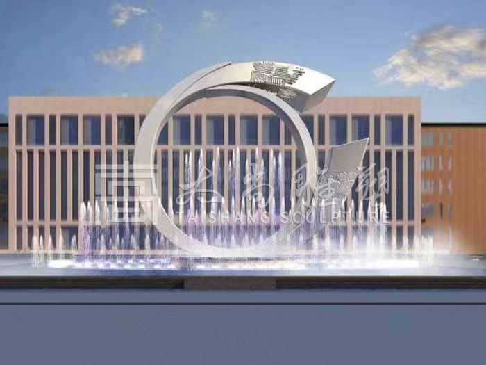 不銹鋼圓形景觀雕塑-學院不銹鋼主題雕塑-學院水景雕塑-不銹鋼拉絲面景觀雕塑-太尚雕塑